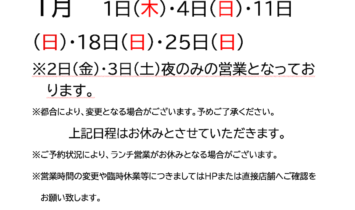 1月の休業日のお知らせ